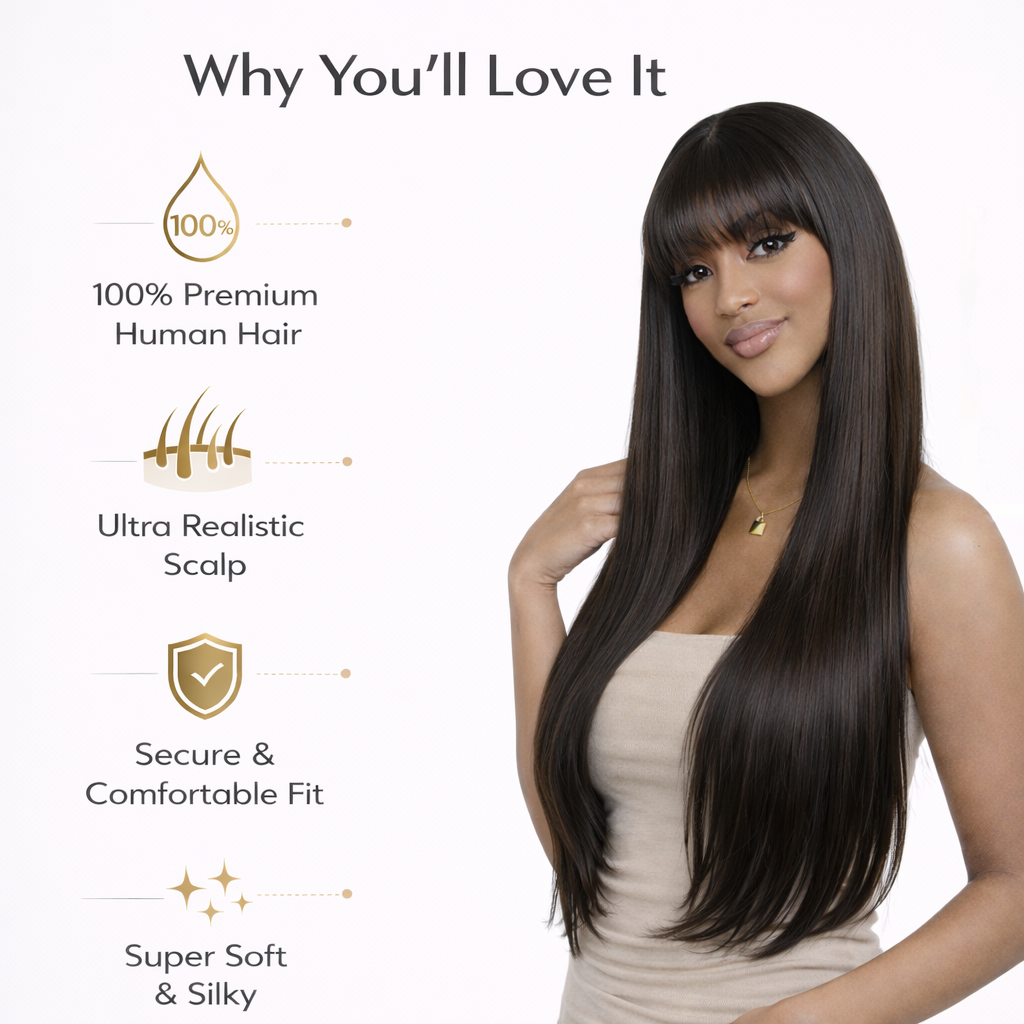 - Bone Straight Wig with pre-styled bangs — ready to wear out of the box