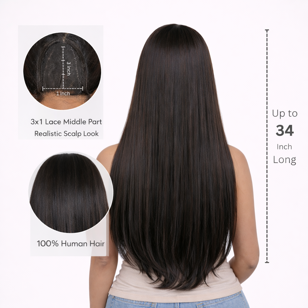 - 3x1 Machine-Made Construction — realistic middle part with natural scalp look