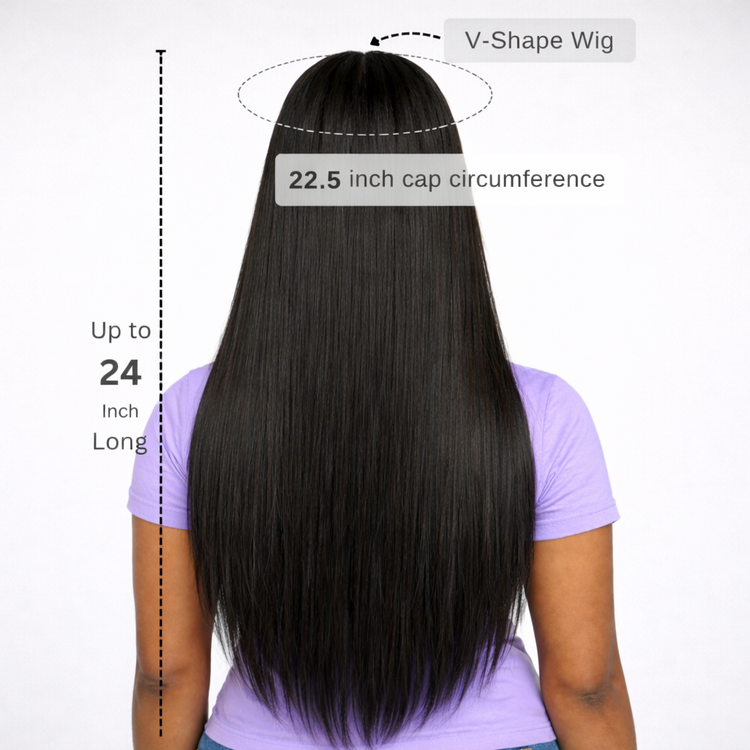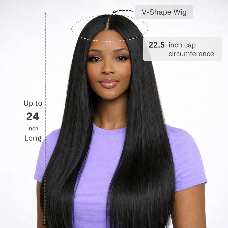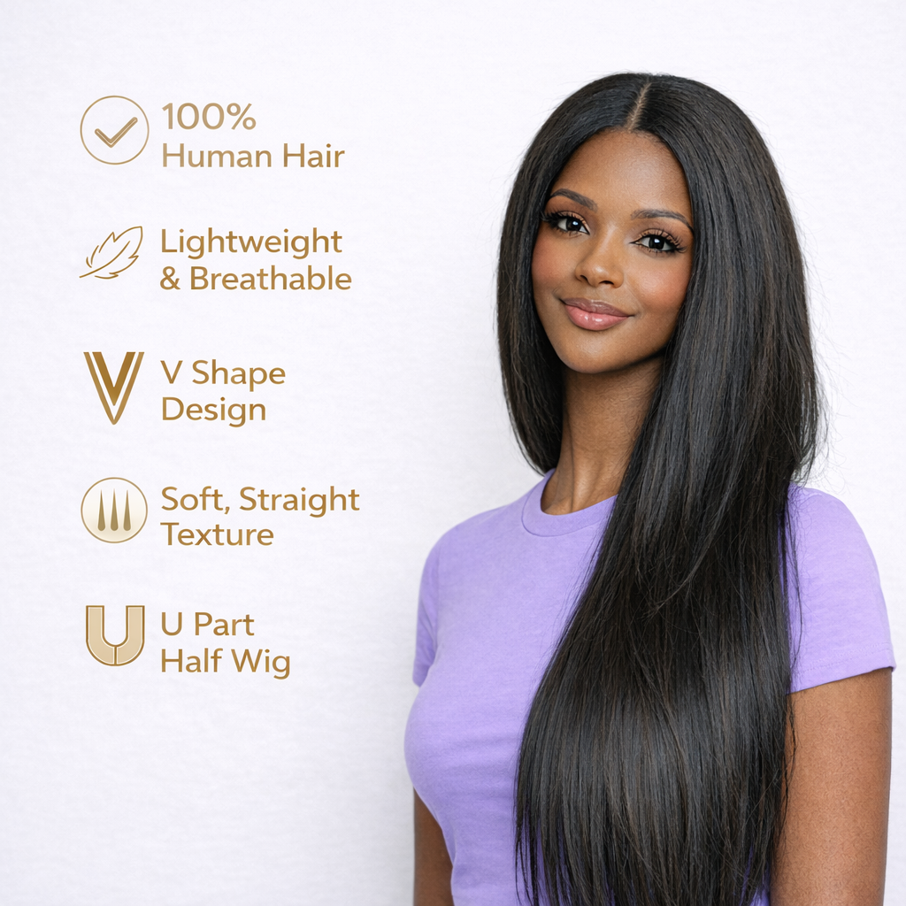 That natural, just-relaxed straight look — without the lace, the glue, or the long install. This yaki straight V-Part half wig blends seamlessly with your natural hair through a small V-shaped opening, giving you a realistic parting line with minimal leave-out. Ready to wear right out of the box.