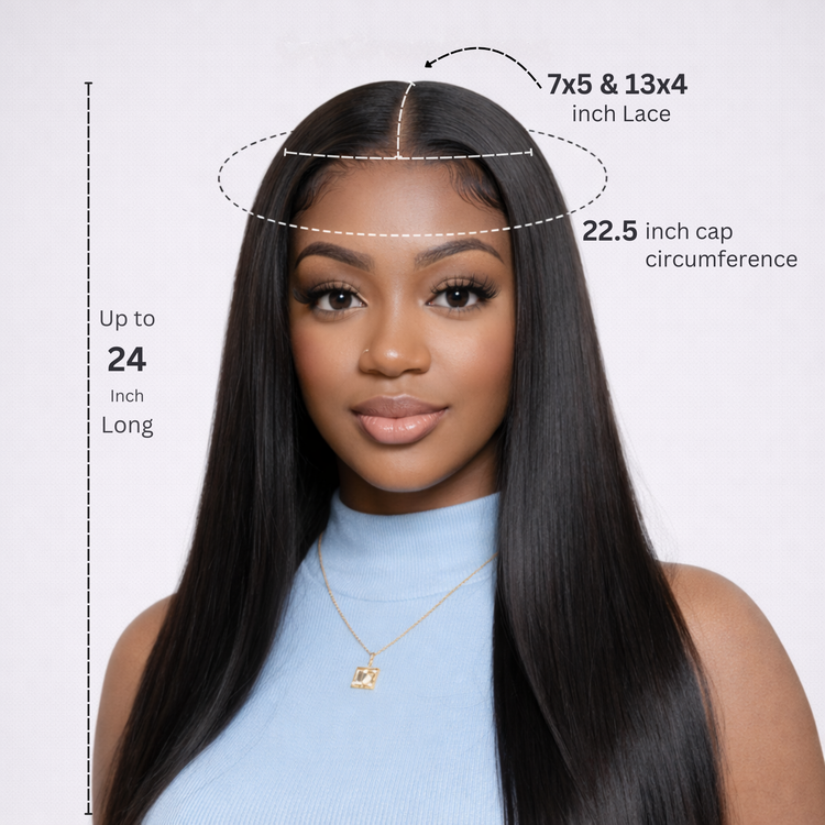 Zero prep, zero hassle — this straight lace wig comes pre-cut, pre-bleached, and pre-plucked so you can wear it straight out of the box. No salon visit, no DIY customization, no waiting. Choose between the 7x5 or 13x4 lace option and you're ready to go.