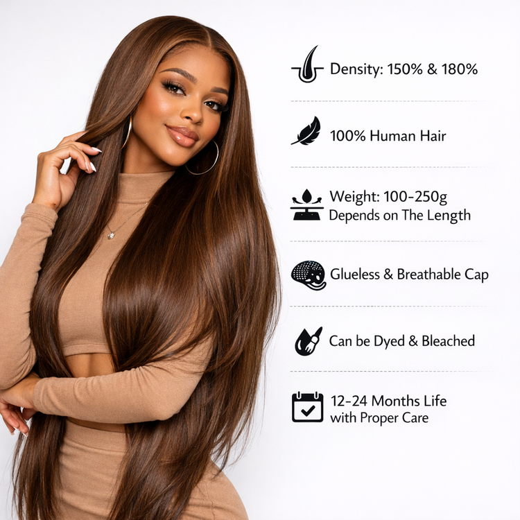 Chocolate Brown Straight Lace Wig | 13x4 & 13x6 HD Lace | 150% & 180% Density